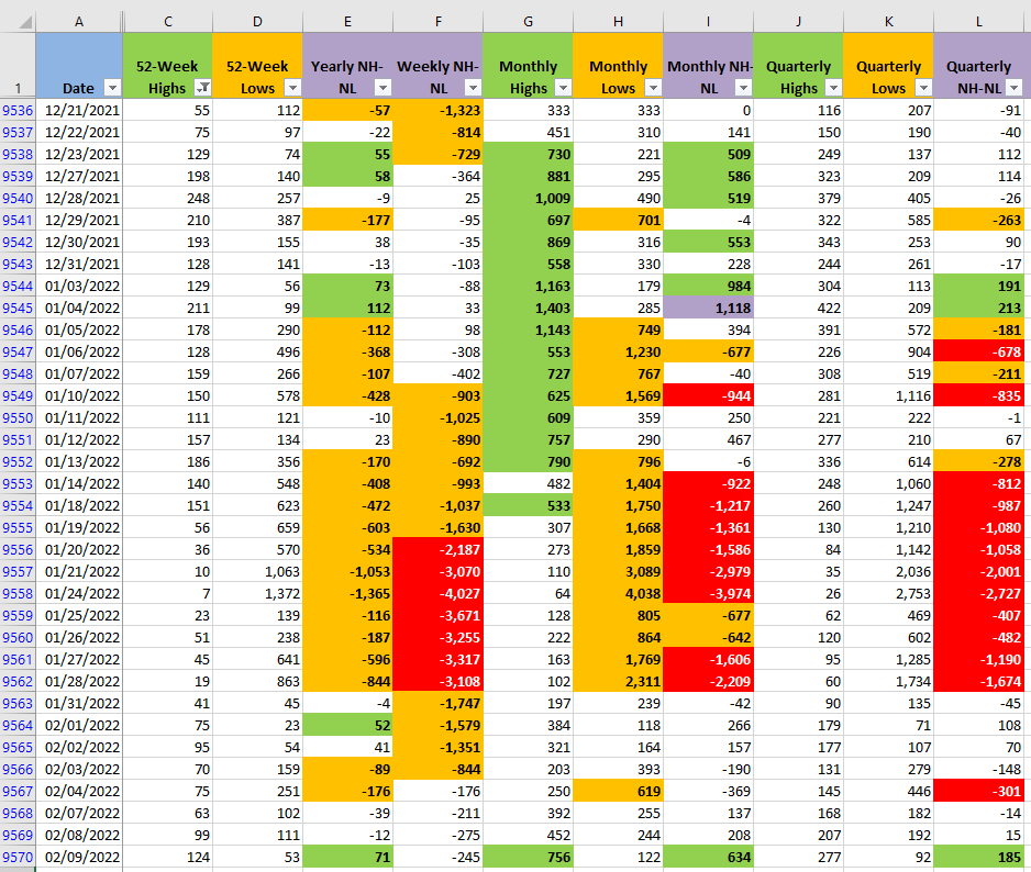 The New High and New Lows numbers improved for all the timeframes I track. In terms of the NH-NL the situation is not the same as it was on Feb/02, the selling pressure looks much weaker now than a week ago. If the New Highs keep increasing and the New Lows stay more or less at the current levels, the rally has a chance to live for several days. The last important rally we had was in Oct/14/2021, after that every single rally has been killed in four days or less. Get ready for the clues that the Market could provide on the last two trading days of the week.